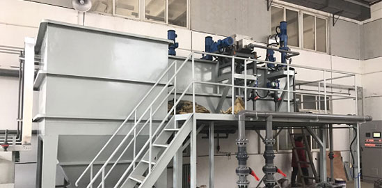 磁粉回收系統有磁分離機和高剪機組成。定時間隔運行或連續運行。磁粉回收系統在沉淀池排泥時啟用,磁粉回收利用,污泥至污泥濃縮池。正常運行磁種由沉淀池沉淀磁粉污泥回流至磁加載反應池。